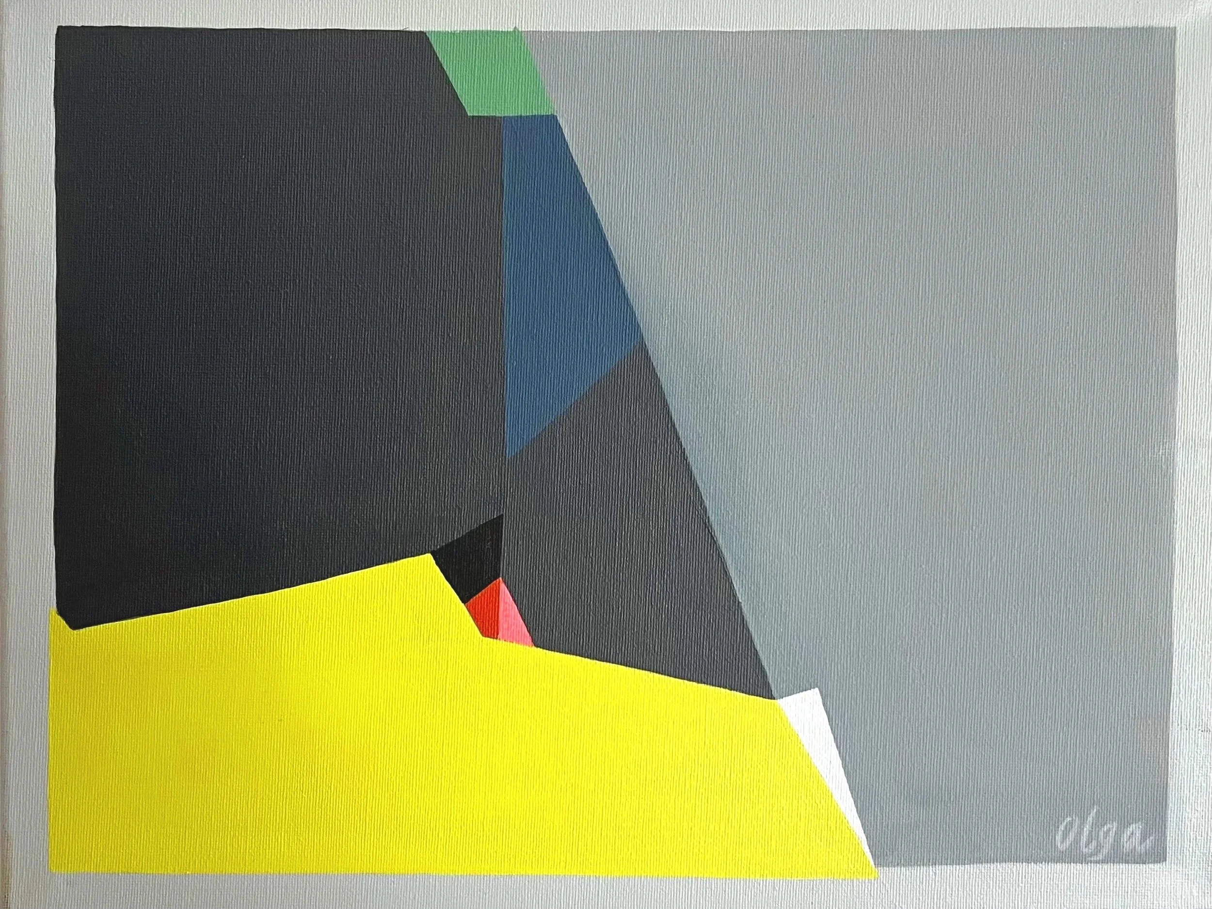 In verschiedenen abstrakten Serien untersuche ich Farben und Komposition. Wann ist ein Bild ein Bild, wann ist es fertig? Wieviel Platz braucht eine Farbe? Was passiert, wenn ich eine andere dagegensetze?